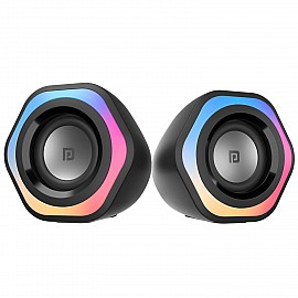 Portronics in Tune 4 6W Portable USB Powered Wired Speaker with Volume Control/ 3.5mm AUX in/ HD Sound/ 2.0 Channel/ RGB Lights/ Gaming Speaker/ Multimedia Speaker for PC Desktop and Laptop (Black)