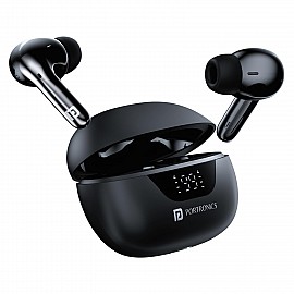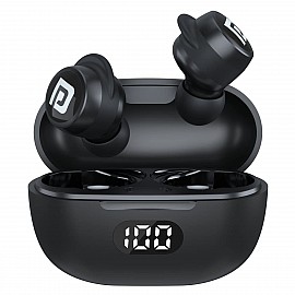 Portronics Harmonics Twins S5 Smart Earbuds with LED Display/ 15Hrs Playtime/ Bluetooth 5.3V/ Music & Game Modes/ Low Latency/ Ipx4 Water Resistant/ Voice Assistant/ Type C Fast Charging - Black