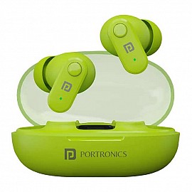 Portronics Harmonics Twins S16 in Ear Wireless TWS Earbuds with 24 Hrs Playtime, Clear Calls, Game and Music Mode, Low Latency, Bluetooth 5.3v, LED Display, Type C Fast Charging - Green