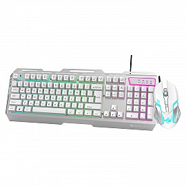 Features: Gaming keyboard and mouse combo Aluminum body, laser keycaps 104 keys including integrated multimedia keys Multi-color LED modes with 3 brightness levels The gaming mouse has breathing LED 6 buttons, DPI switch Up to 3200 DPI Long and strong cable Gold plated USB Keyboard: Integrated Media control keys Multi Color LED with 4 mod..