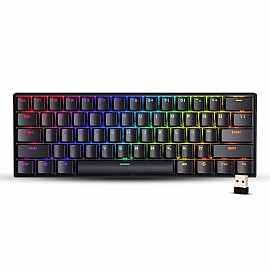 Zebronics Zeb-Max Ninja Wireless RGB Mechanical Keyboard with 61 Keys, 21 Backlit LED modes, 2.4GHz, 3X Bluetooth, Type C Wired Mode, Built-in Rechargeable Battery, 1.8m Type C Braided Cable - Black