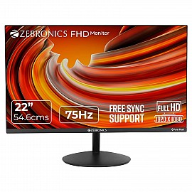 ZEBRONICS 22 inch 75Hz Monitor with FHD 1080p/ Free sync Support/ HDMI/ VGA/ 250 Nits max/ 16.7M Colors/ Built-in Speakers & Slim Bezel Less Design ZEB-S22A