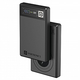 Portronics Power Shutter Powerbank - 15W Wireless Charging/ 22.5W Type C PD Output/ In Built Type C and 8 Pin Cable/ LED Display (Black)